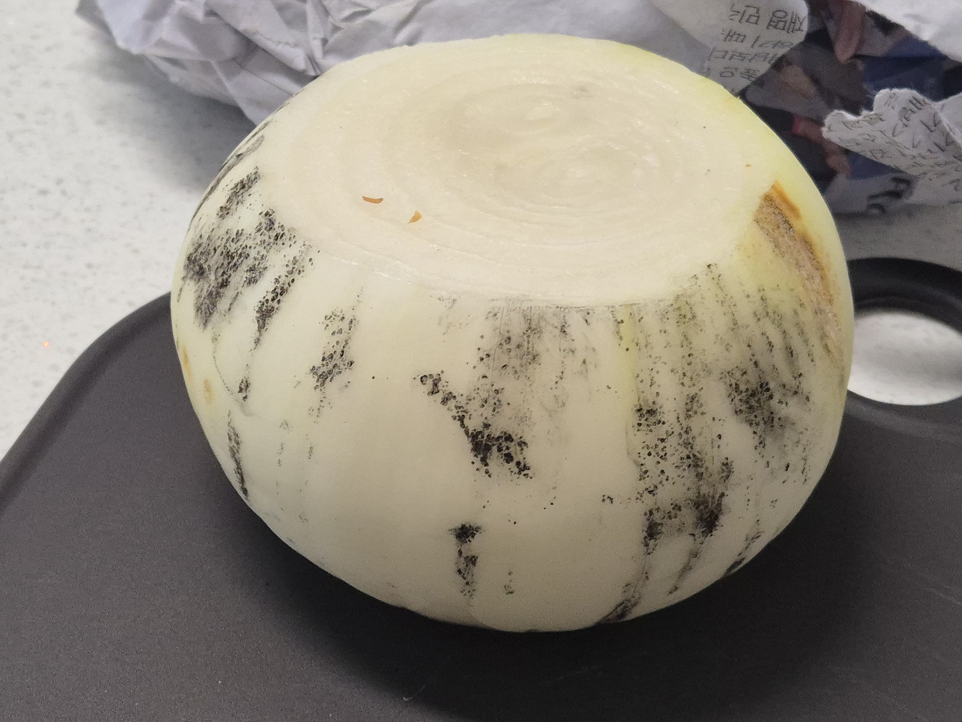 이번에는 쿠팡으로 양파 1kg(양파 4개 정도)을 샀는데, 랩과 키친타올로 잘 감싸 보관했는데도 검은 곰팡이가 금방 생기더라고요😂 겉 껍질만 그런걸까? 살짝 기대하는 마음으로 양파를 손질해보았는데 깐 양파 겉 과육까지 곰팡이가 피었어요!