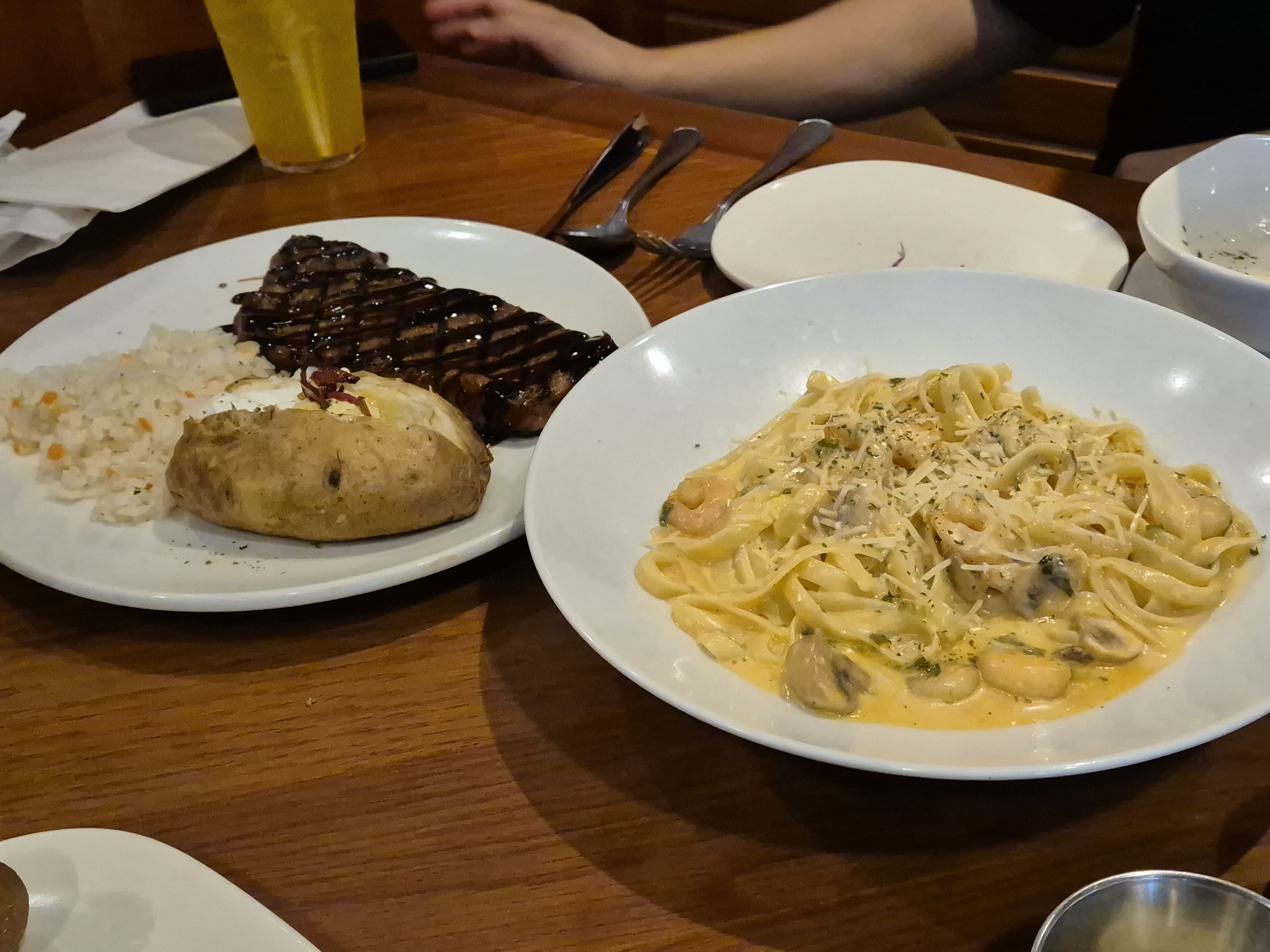 - 투움바 파스타 면 변경 & 소스 추가: 투움바 파스타는 얇은 스파게티 면으로 변경할 수 있고, 소스를 넉넉하게 요청하거나 먹다가 부족하면 추가해달라고 할 수도 있답니다. 여기서 또 한가지 팁. 스테이크 사이드로 볶음밥을 선택하고, 파스타 소스 추가 요청을 해서 섞으면 리조또를 먹을 수 있습니다. 저도 이렇게 주문해서 먹었더니 너무 푸짐하고 배부르게 먹고 왔어요!
